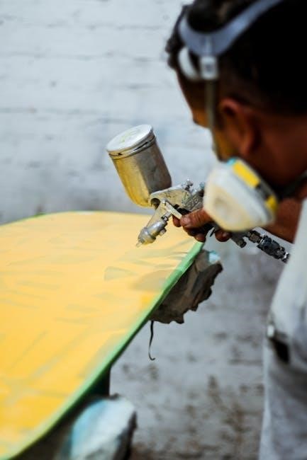 Trigger control is crucial; start and stop moving the gun before releasing the trigger to prevent splattering. For corners and edges‚ adjust your angle and spray pattern accordingly. Always work in well-ventilated areas and wear appropriate safety gear. Practice on scrap material to refine your technique before tackling your main project.